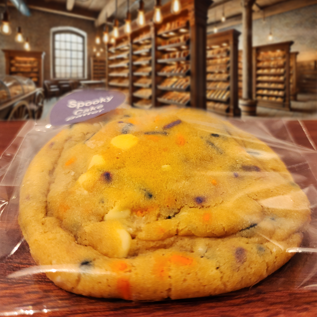 Introducing our Spooky Cake Batter Cookie (same as Cake Batter Cookie, with Halloween Sprinkles), a decadent, oversized treat inspired by the viral sensation that took the internet by storm. This cookie combines the nostalgic flavors of classic birthday cake with the perfect chewy, gooey texture in every bite. Baked to perfection with rainbow sprinkles folded into the soft dough, it bursts with colorful fun and flavor reminiscent of celebrations and childhood memories.